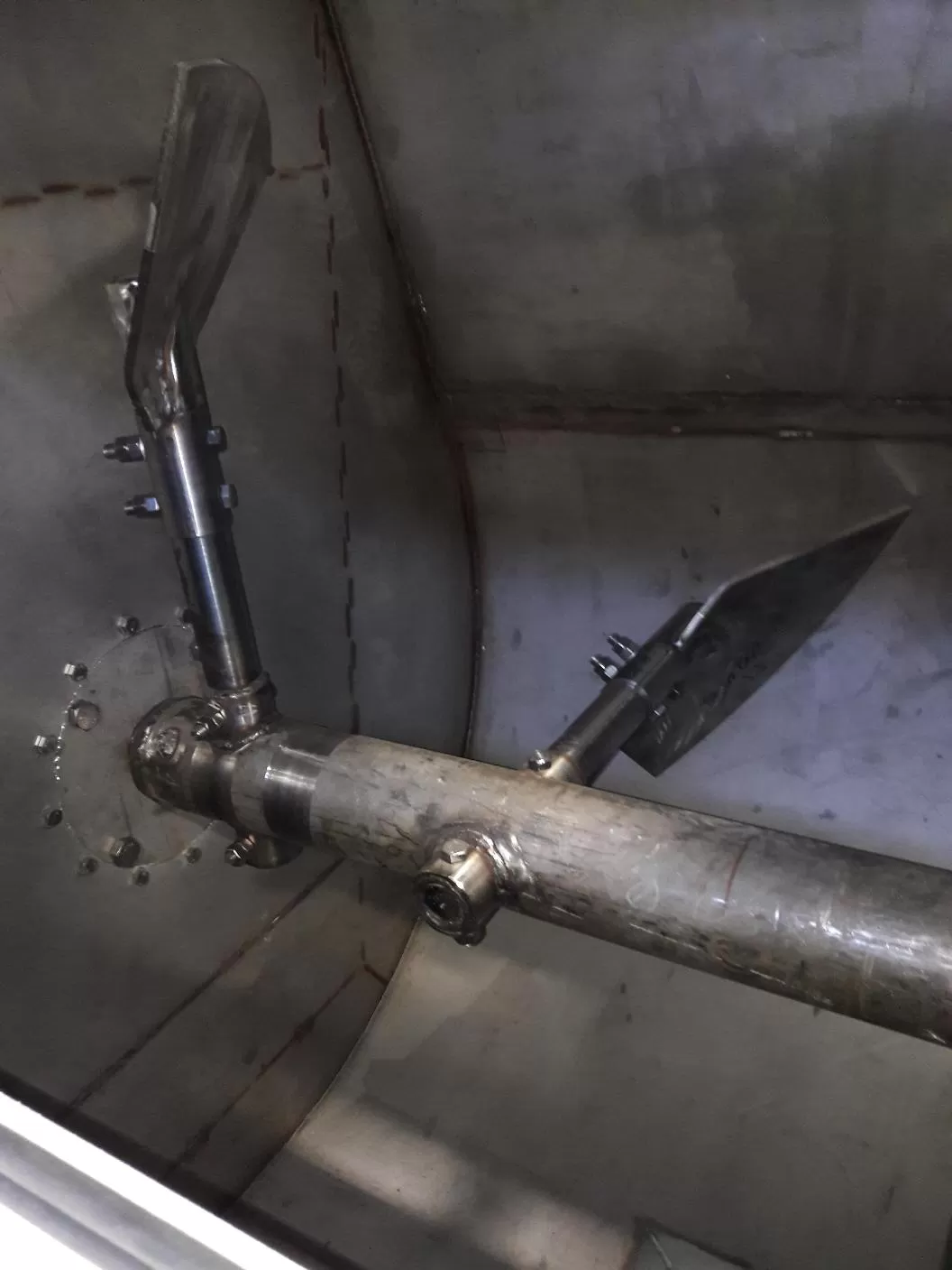Смесительная камера имеет форму открытого цилиндра. Система настройки лопастей, закреплённых на валу внутри смесителя, гарантирует отличную гомогенность (1: 100 000), быструю выгрузку находящегося внутри продукта, а так же отсутствие «мертвых зон» где может скапливаться продукт смешивания. Вал смесителя установлен на двух роликовых подшипниках, он приводится в движение напрямую подключенным к редукторному мотору, который снижает потерю энергии и затраты на техническое обслуживание редуктора и цепной трансмиссии. Смеситель может быть установлен на раму с тензометрическими датчиками, которая подсоединена к дозирующей системе контролируемой компьютером, что позволяет производить полный мониторинг производства.