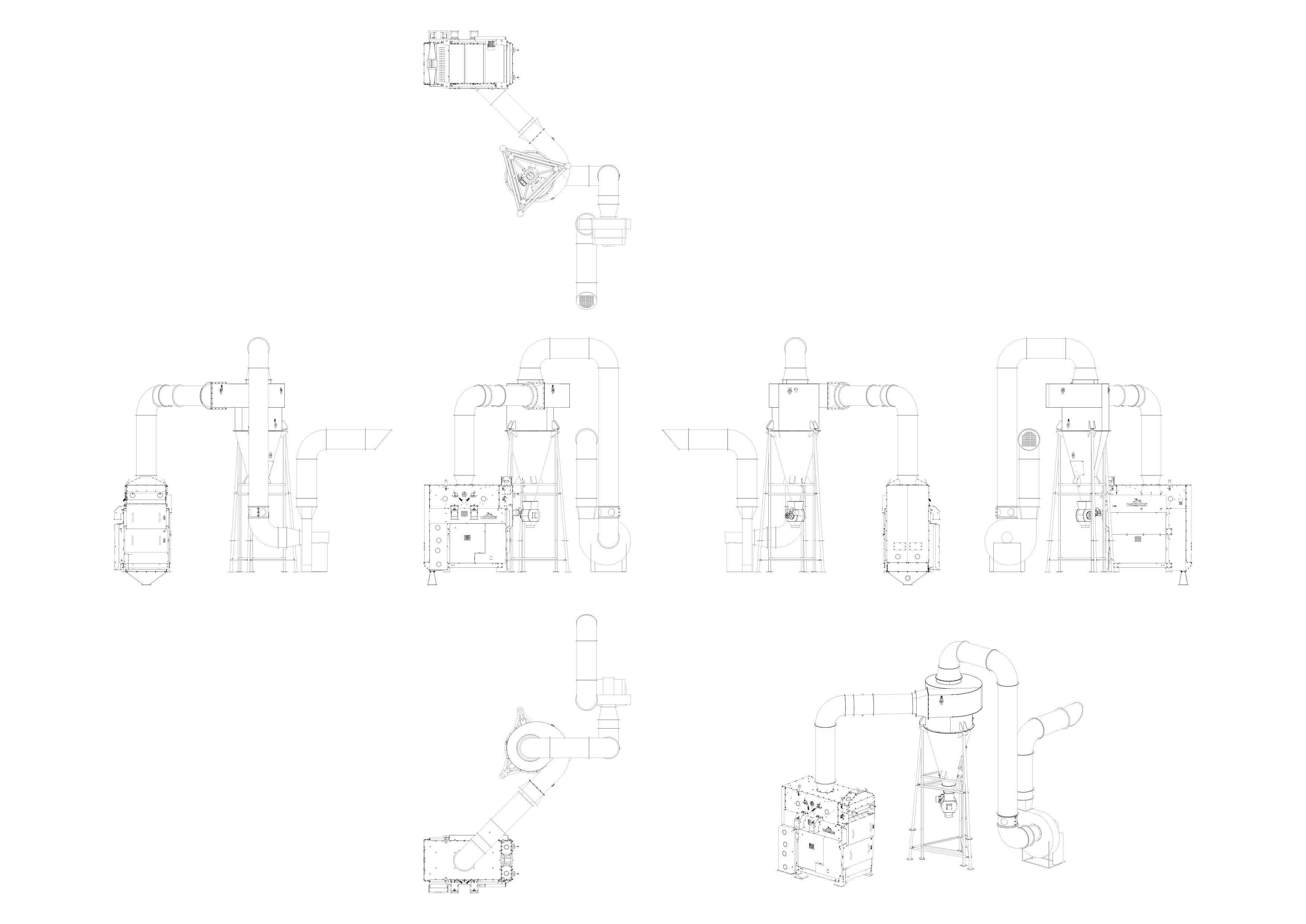 - Универсальность применения выходов продукта и примесей слева и справа;