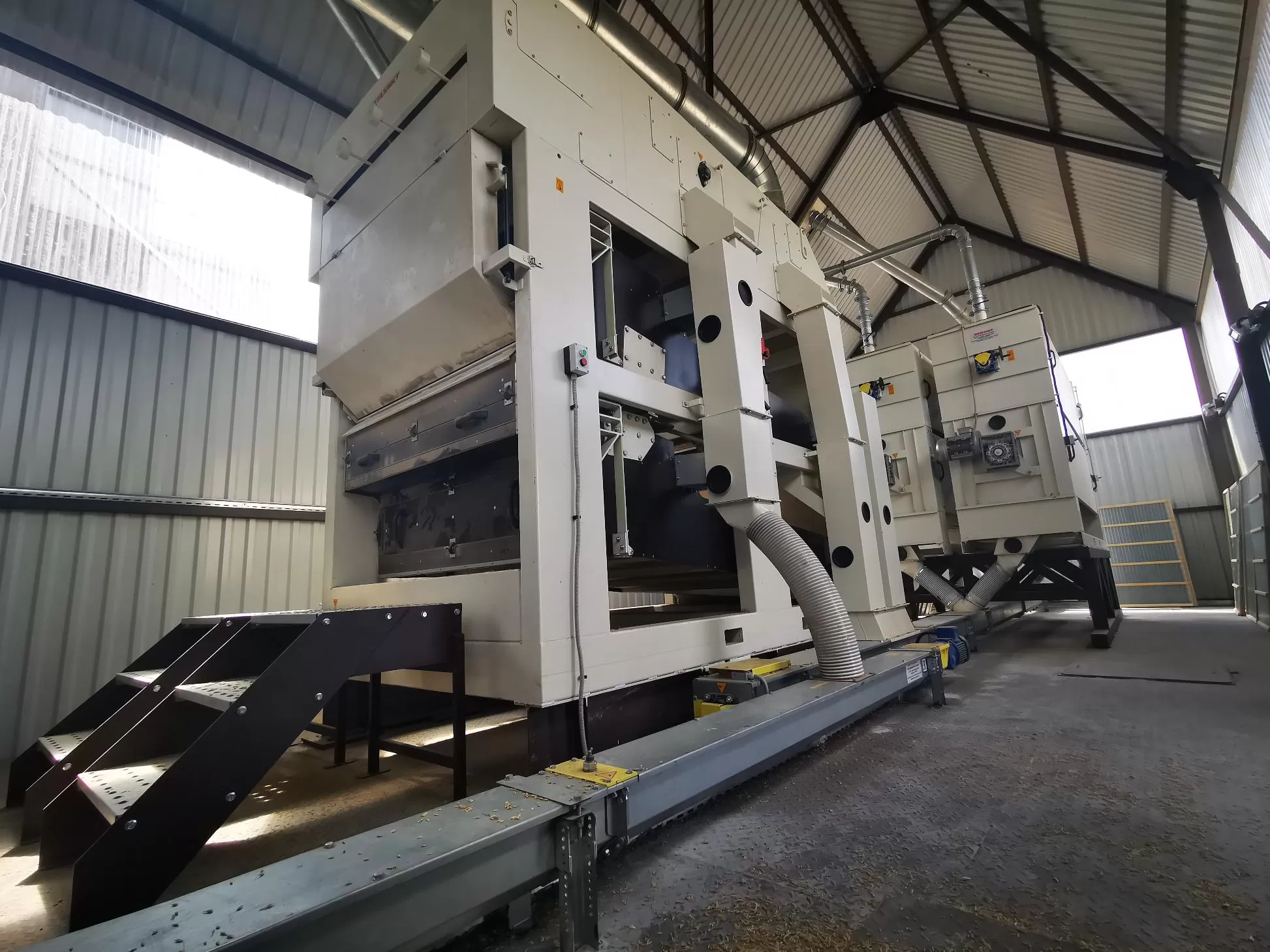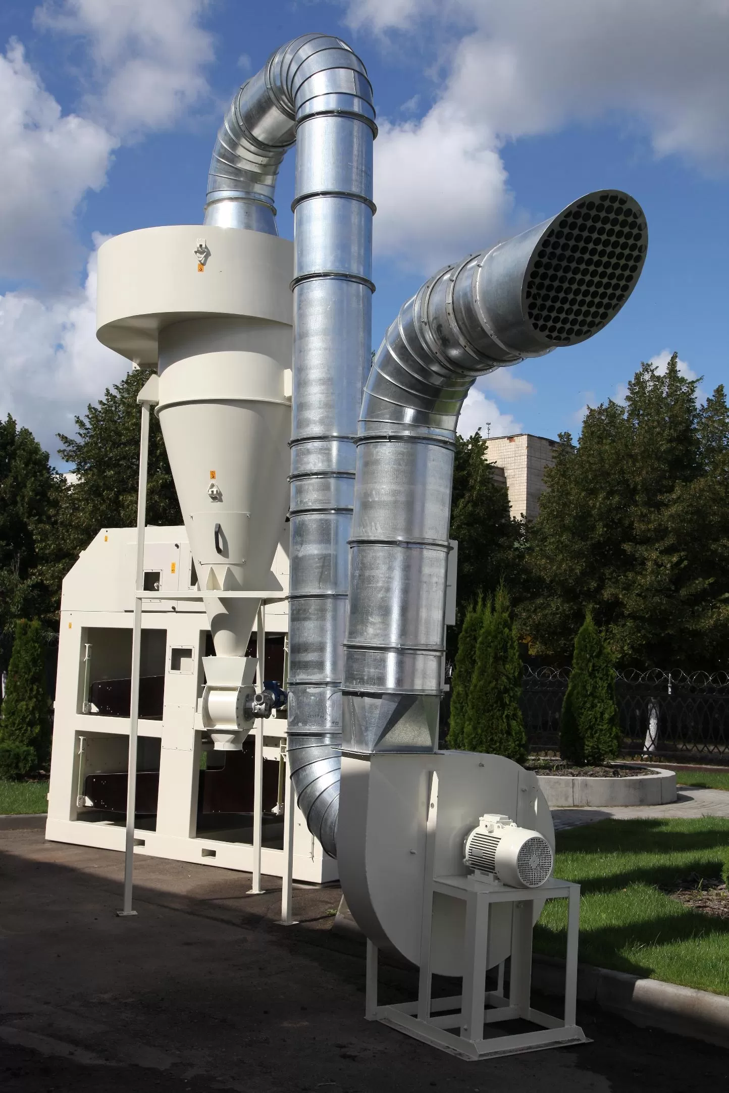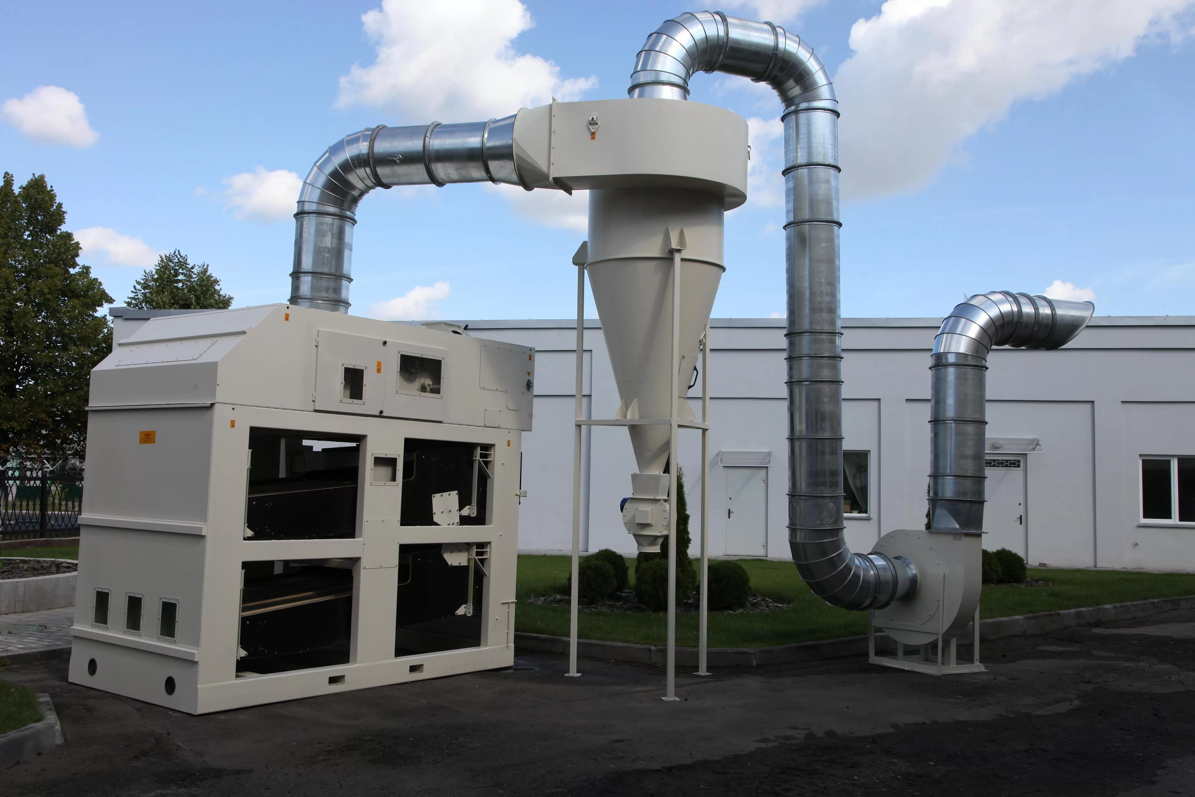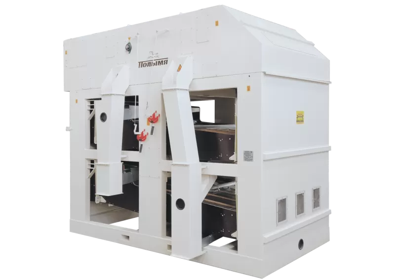 Очищаемый продукт подается в приемный бункер, откуда, преодолевая сопротивление питающей заслонки, равномерным слоем попадает в аспирационную камеру, где удаляются легковесные примеси (пыль, шелуха и тд), оседающие в осадочной камере. Воздушный поток в системе аспирации регулируется под каждую культуру.Далее продукт разделяется и поступает на два решетных стана где: