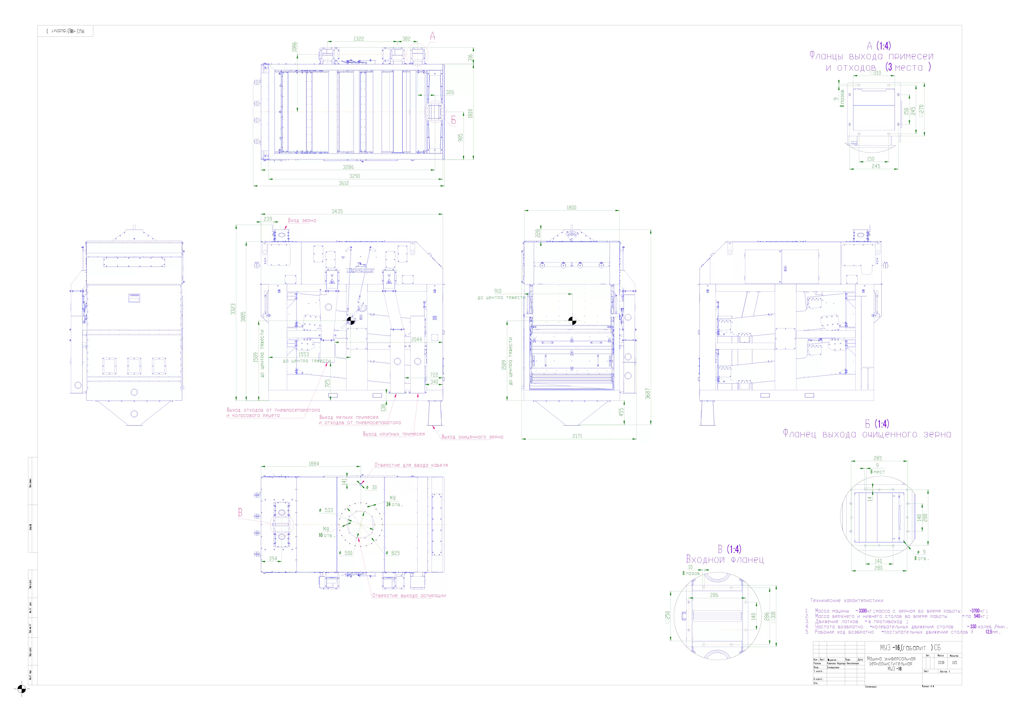 - Машины типа МУЗ—16 построены таким образом, что можно наблюдать и контролировать весь процесс очистки материала и работу основных частей машины.