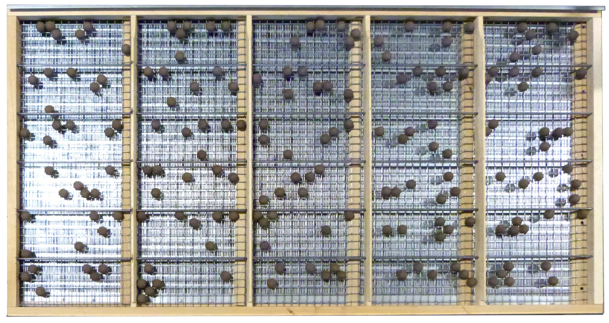 Очистка решет осуществляется хаотически движущимися шариками, которые находятся в специальных ячейках в каждом решете.