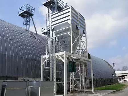 - Накопительные. Предназначены для временного хранения и накопления зерна до его дальнейшей переработки или транспортировки. Играют роль буферной зоны между этапами обработки, сохраняя сырье перед его подачей в сушилки, сортировочные машины или транспортные системы.