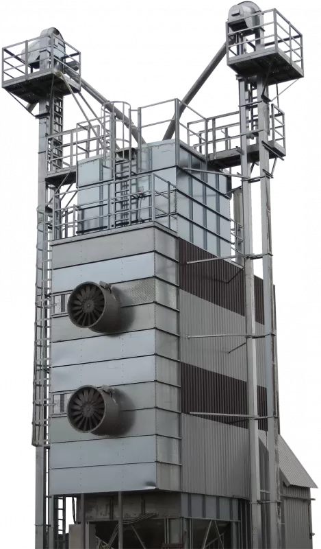 В конструкцию зерносушилок входят:- Воздухонагреватель. Устанавливается в канале горячего воздуха, а в более мощных моделях присоединяется напрямую к каналу горячего воздуха, чтобы исключить дополнительные каналы подачи теплоносителя;