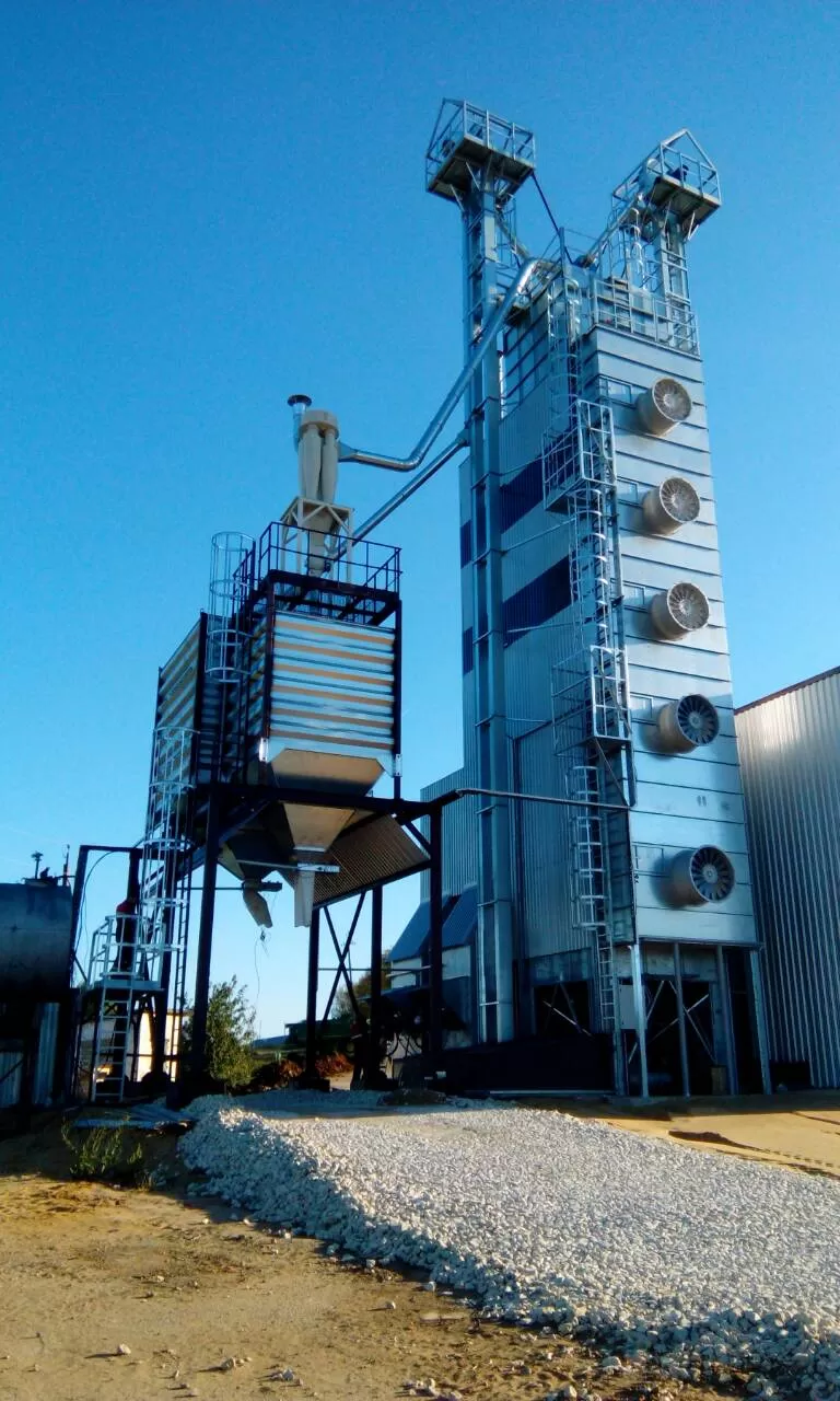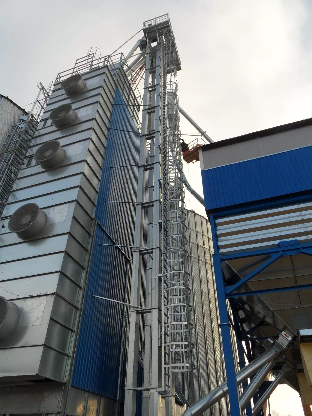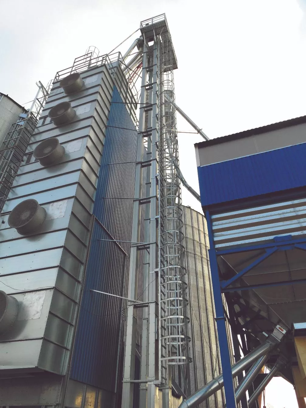 Система безопасности. Многоуровневая система безопасности зерносушилки позволяет значительно повысить пожаробезопасность зерносушилок. Система управления дает команду на электромеханический клапан отсечки подачи топлива при отсутствии электропитания, отрыве пламени от горелки или отключении одного из вентиляторов, а также при превышении предельной температуры в канале горячего воздуха, что сопровождается световой индикацией и звуковым сигналом, и благодаря чему значительно уменьшается возможность возгорания зерносушилки. Кроме этого, предусмотрена возможность быстрой разгрузки шахты.